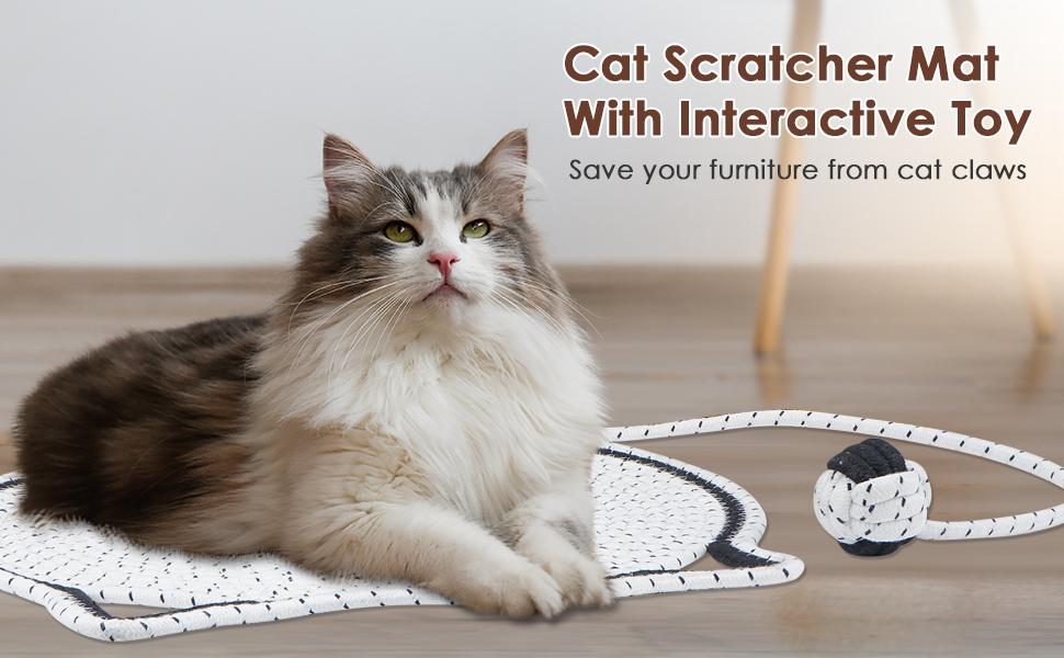 Safe and Non-Toxic: Our new design cat scratcher mat is hand-made from natural cotton rope material, the scratching surface is chemical-free, eco-friendly and non-toxic, ensuring the safety of your cat and the environment.