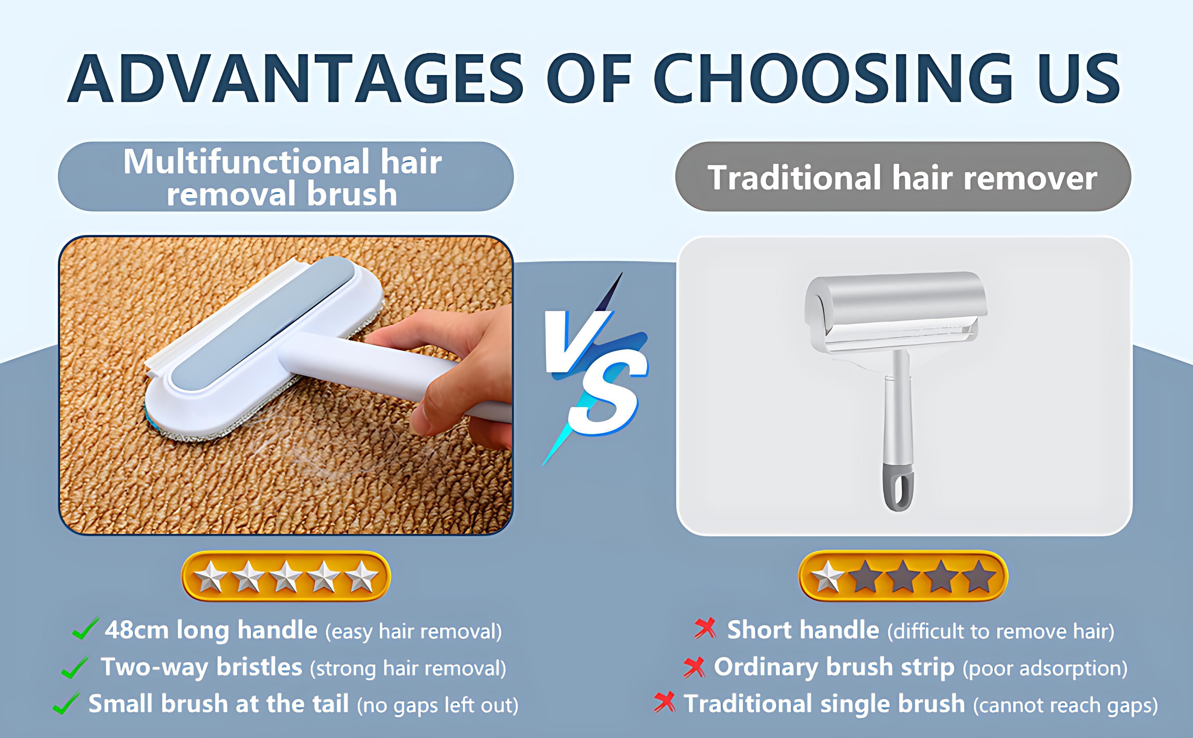 - 【How to use】:·Brush back and forth on hairy areas Keep sticking to the surface and rub it Push and Pull, not in one direction, Treat it as a brush instead of a broom·For non-fixed surfaces(such as bed sheets, clothing), Steady it with your hands before brushing.·If the hair is firmly stuck, use more effort. It will not damage the surface.·Spray some water on the brush to effectively reduce the flying of cat hair.